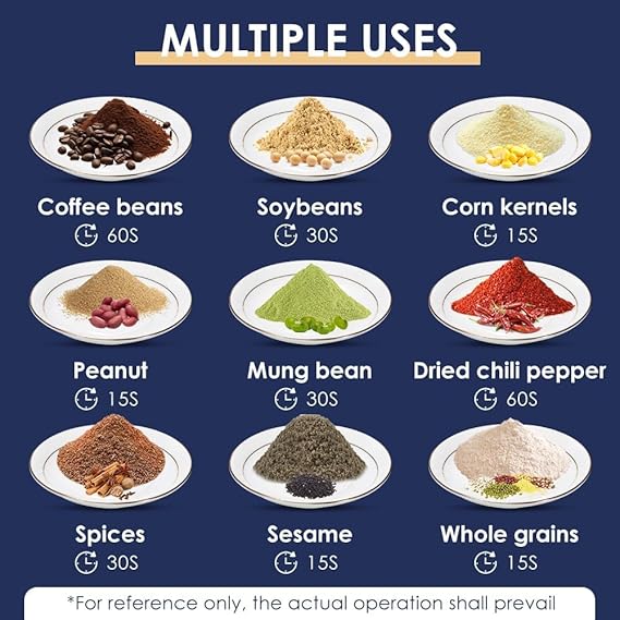 - [Good Helper for Cooking]: Small size,big energy,Quick grinding with one click.crushing seasoning, supplement,meal powder,grinding herbs,grinding nutrients,grinding ingredients,coffee beans, nuts,herbs,grains,peppers,seeds,one key grinding,fresh and good life.Save you a lot of time to do other more meaningful things and enjoy your life easily.
